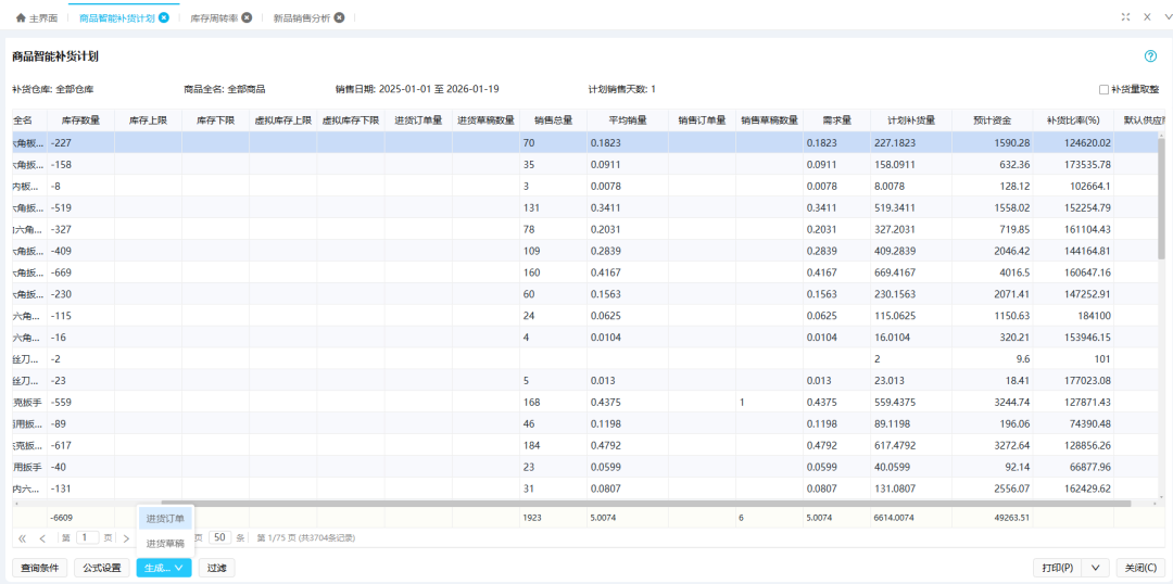 功能四:商品智能补货计划 —— 智能采购,精准不断货